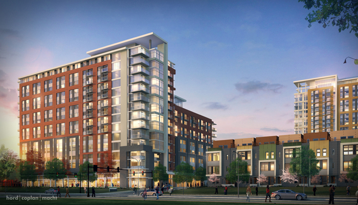 Development of 2901 Eisenhower Avenue includes two high-rise residential towers with 533 apartments, 67 townhouses, and 9,000 square feet of retail located on the ground floor of the southernmost residential tower. Other amenities include: