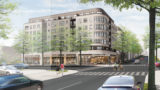 As approved, the project will replace the existing NSTA office building, Il Radicchio restaurant, and the Rhodeside Grill with a new seven-story, LEED Gold mixed-use residential building with approximately 187 units and 11,948 square feet of ground floor retail.