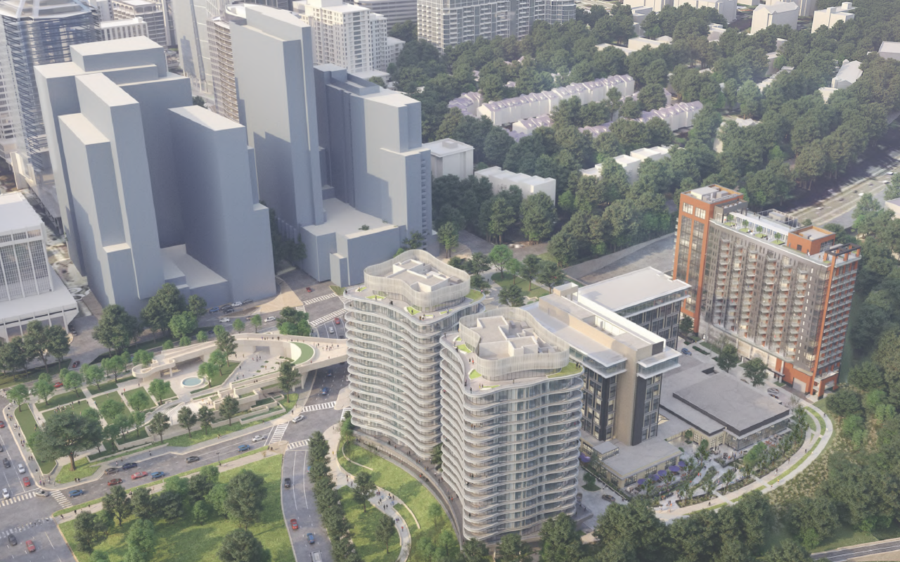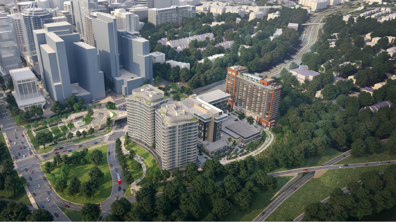 The proposal includes the demolition and renovation of portions of the existing hotel, construction of a new apartment building on the western portion of the property over the existing parking deck, and the construction of two new condominium buildings on the eastern portion of the property. The hotel will contain approximately 299,953 square feet of development and 445 hotel units. The apartments will contain approximately 301,617 square feet of development with 300 residential units, and the condominium buildings will contain a total of 334,996 square feet of development with 151 residential units.