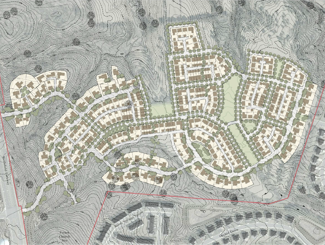 To implement its vision for the future neighborhood, the Harris Family worked with Elm Street Communities, new urbanist architect/planner Michael Watkins Architects, and the Dewberry, Ltd engineering firm. Together, the team crafted a plan for a 250-unit neighborhood that is conceived as one larger “village” with three smaller “neighborhoods,” which will feature both single family homes and townhomes.