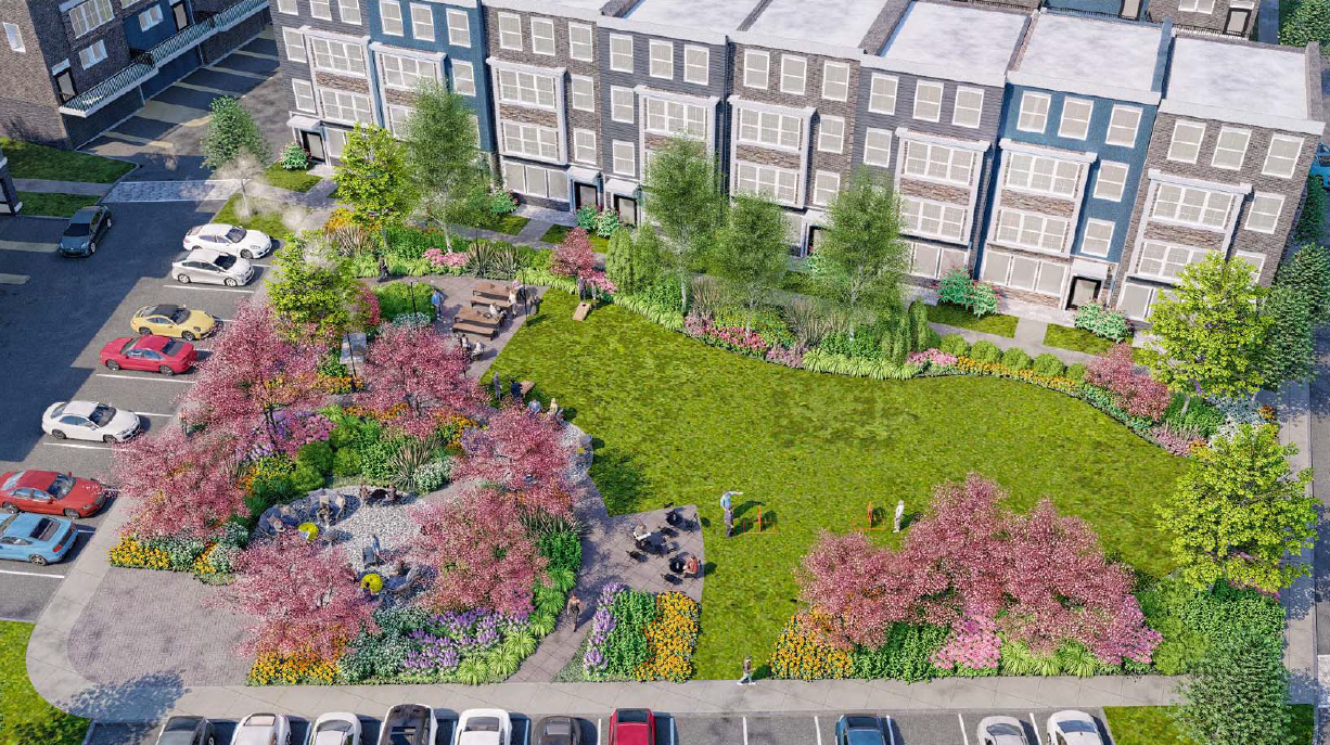 From a housing affordability perspective, a range of housing types and sizes will be offered, including 11 Affordable Dwelling Units and three Affordable Market Purchase Program Units. In order to attract younger professionals and older “move-down” buyers, the project will introduce two “Missing Middle” housing types that do not yet exist in Loudoun’s Urban Policy Area—stacked townhomes and attached multifamily dwelling units.
