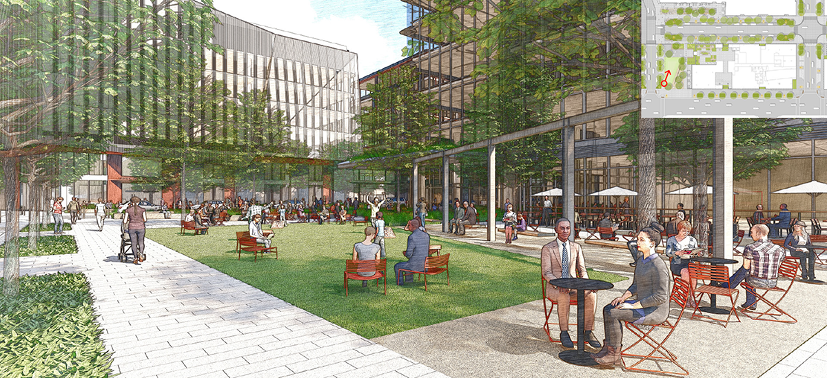 Known as the Innovation District, the new development will become a vibrant hub of activity that will serve as an economic engine to drive North Potomac Yard and the City into the future. The approvals allow JBG Smith to deliver four office buildings and two residential buildings – all with ground floor retail – and enable Virginia Tech to construct the first of three planned academic buildings in its new Innovation Campus. Designed by five different teams of architects, the buildings achieve a variety of innovative architectural expressions, while maintaining a sense of cohesion across the Innovation District as a whole. In addition to the buildings, the Innovation District will have a network of publicly accessible open spaces connected by a network of pedestrian-focused streetscapes, bicycle paths and shared use paths. The open spaces include Market Lawn, Metro Plaza, and a 4.5 acre extension of Potomac Yard Park that will be considered at forthcoming public hearings in December 2020.