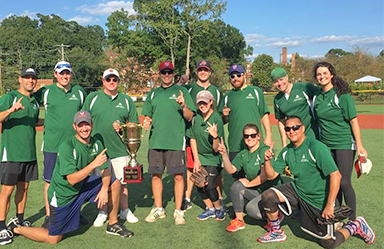 First it was the Washington Capitals lifting the Stanley Cup back in June, and then it was Walsh, Colucci, Lubeley & Walsh’s mushball team lifting The Mushball Cup in September. The LandLawyers, a team of 12, representing Walsh, Colucci, Lubeley & Walsh’s and consisting of Firm employees and spouses, won the second annual Real Estate Mushball Classic on September 29th. The Real Estate Mushball Classic is a tournament hosted by the Nationals Youth Baseball Academy which is open to organizations that are members of the Washington D.C. area real estate community. This year’s field consisted of twelve highly competitive teams, and the LandLawyers’s path to victory required three wins in the group stage, as well as two wins in a four team playoff.