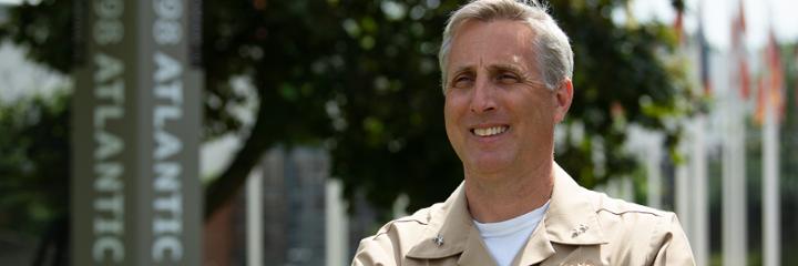 Andy Burcher, L’97, begins a conversation about his work debunking the common misconception that working for the Navy Reserve is a part-time job. It may be for some, but what Burcher’s been doing for the past two years is very much a full-time responsibility: He’s in charge of submarine operations for NATO.