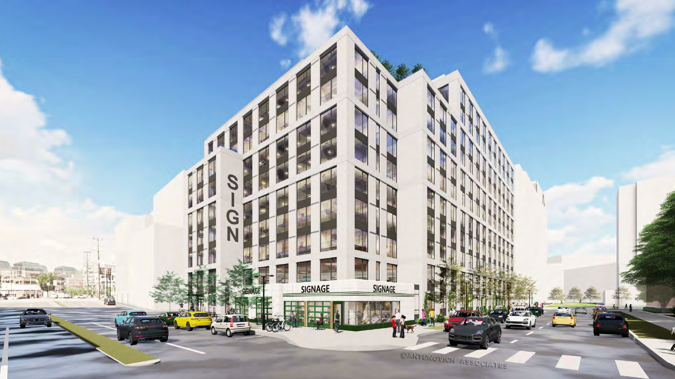 Following on the heels of the County Board’s adoption of the updated Clarendon Sector Plan, the proposed redevelopment includes a mixed-use residential building containing up to 241 residential units, a maximum of 186,254 square feet of residential GFA, and a maximum of 3,825 square feet of ground floor retail GFA.
