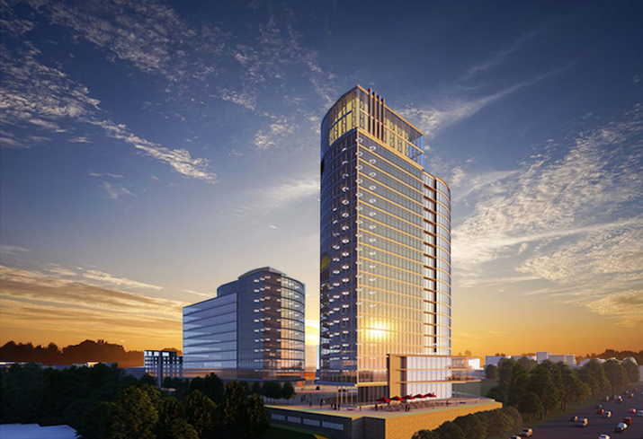 The office buildings were approved with a height of up to 275 feet, creating a prominent architectural feature along the Toll Road. Residential buildings can range in height from 65 to 105 feet, and feature large exterior courtyards to complement the interior residential amenity areas.